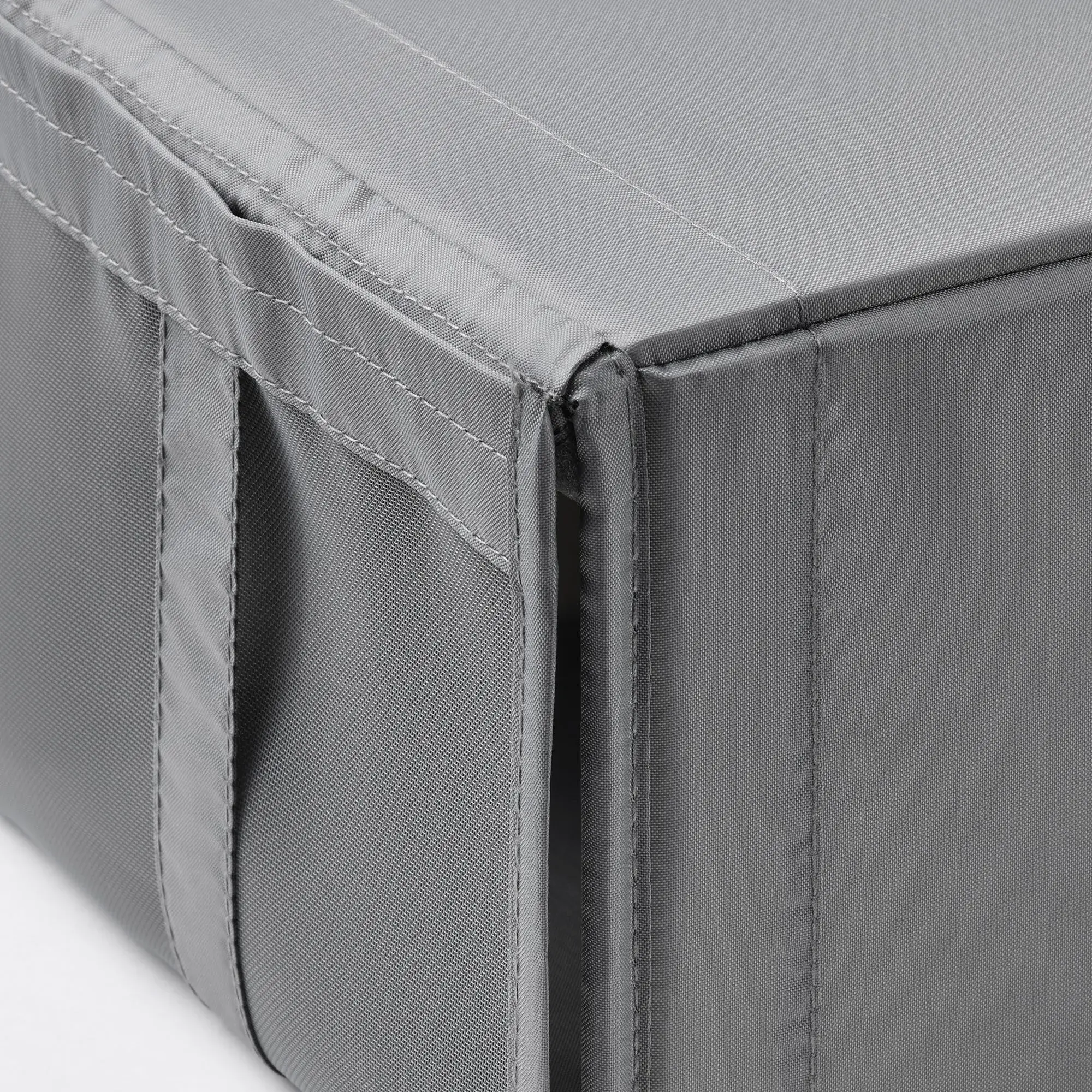 وقتی به جعبه نیازی ندارید و میخواهید در فضا صرفهجویی کنید، کافیست زیپ پایین را باز کنید و آن را صاف تا کنید.