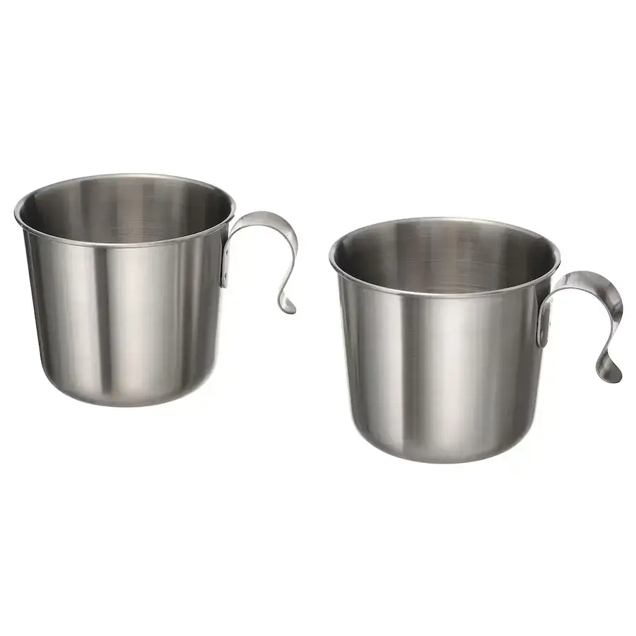 ست ۲ عددی لیوان استیل ایکیا GRILLTIDER انتخابی عالی برای استفاده در پیکنیک، سفر، کمپینگ، مهمانی و محیطهای باز است. این لیوانهای استیل با طراحی ساده و مقاوم، بسیار مستحکم، سبک و ضدزنگ هستند و برای نوشیدنیهای سرد و گرم مناسباند.